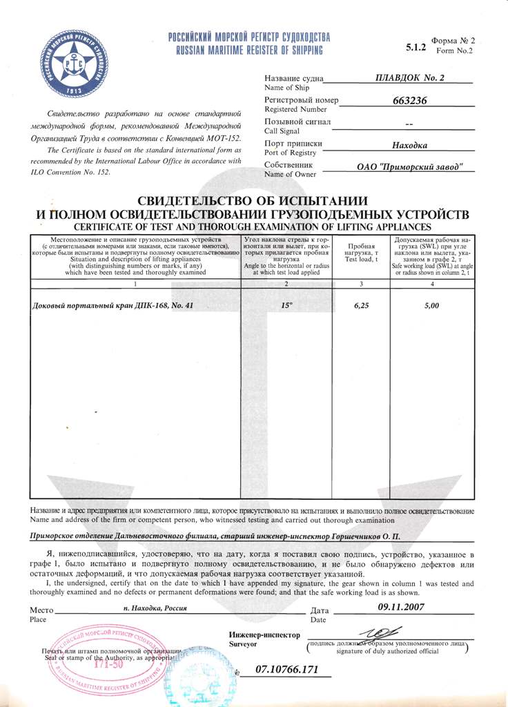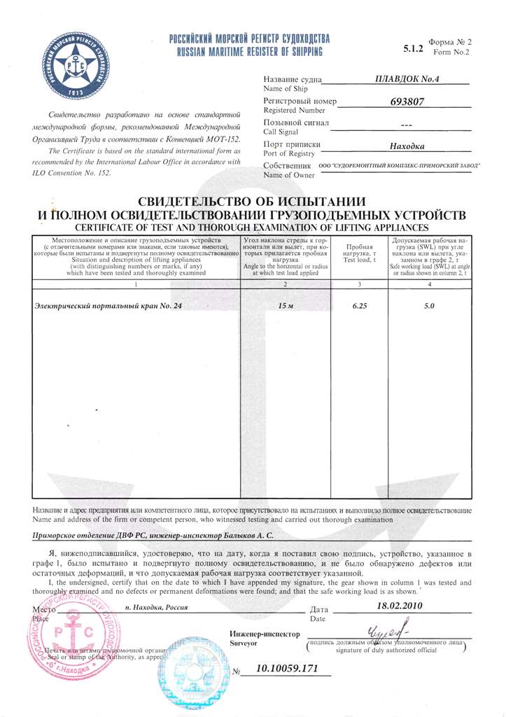 производ. - 10 м3/мин, давление - 6,5 кг/см2 плавдок №4 макс.доковый вес судна - 8500 т, макс.длина - 170 м, макс.осадка - 5,4 м напряжение - 380 В, частота - 50 Гц 8Чн 25/30, мощность 300 кВт, кол-во - 2