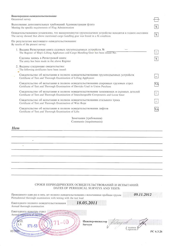 Тип крана Грузоподъемность, т Местонахождение КОНЕ 30/5 Пирс №1 КОНЕ 30/5 Пирс №2 КИРОВЕЦ 15 Пирс №3 ЧЕРЕТТИ 30 Причал №28 ЧЕРЕТТИ 30 Причал №28 ГАНЦ 5 Причал №27 КРАН МОСТОВОЙ 30/5 Блок-цех, участок ДВС КРАН МОСТОВОЙ 20 Блок-цех, участок наплавочный КРАН МОСТОВОЙ 15/3 Блок-цех, участок по ремонту ВРК КРАН МОСТОВОЙ 5 Блок-цех, участок по ремонту ВРК КРАН МОСТОВОЙ 5 Блок-цех, участок станочный КРАН МОСТОВОЙ 15/3 Блок-цех, участок по ремонту крышек цилиндров ДВС КРАН МОСТОВОЙ 15/3 Блок-цех, участок корпусно-докового производства КРАН МОСТОВОЙ 5 Блок-цех, участок котельно-трубопроводного производства КРАН МОСТОВОЙ 15/3 Блок-цех, участок ДВС КРАН МОСТОВОЙ 10 Блок-цех КРАН МОСТОВОЙ 10 Блок-цех КРАН-БАЛКА
