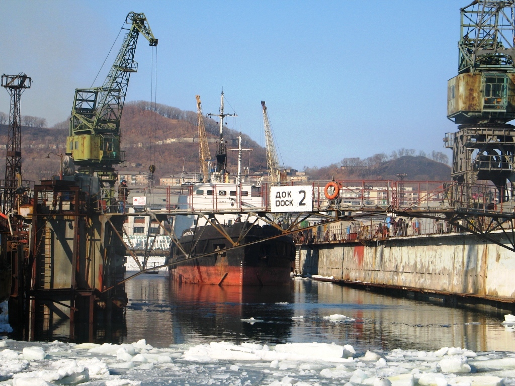 21 февраля осуществлен подъем судна в плавдок №2. Предстоит выполнить доковый ремонт, в том числе очистку, покраску корпуса, а также ремонт отдельных механизмов: дейдвудного и рулевого устройств, ремонт донно-забортной арматуры, наплавку швов, трубопроводные работы.
