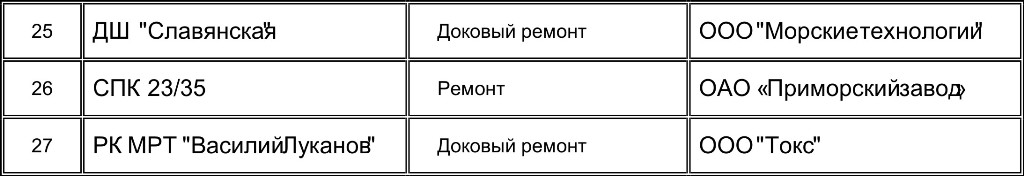 - БК "Ермак" (ООО "СПС-Находка") - доковый ремонт,