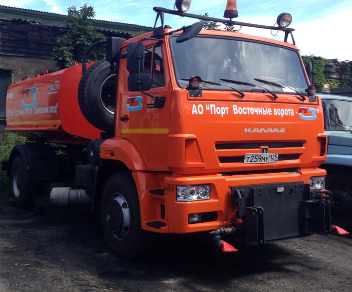 Данная машина также проводит ежедневный полив (утром и вечером) городских автомобильных и придомовых дорог в районе улиц Арсеньева и Пирогова, примыкающих к территории порта.