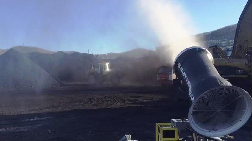 Пушка работает в постоянном режиме и орошает угольные бурты с целью уменьшения пылеобразования. Внутренние производственные проезды между штабелями угля регулярно поливаются поливальной машиной, арендуемой у МУП «Дорожно-эксплуатационный участок города Находки».
