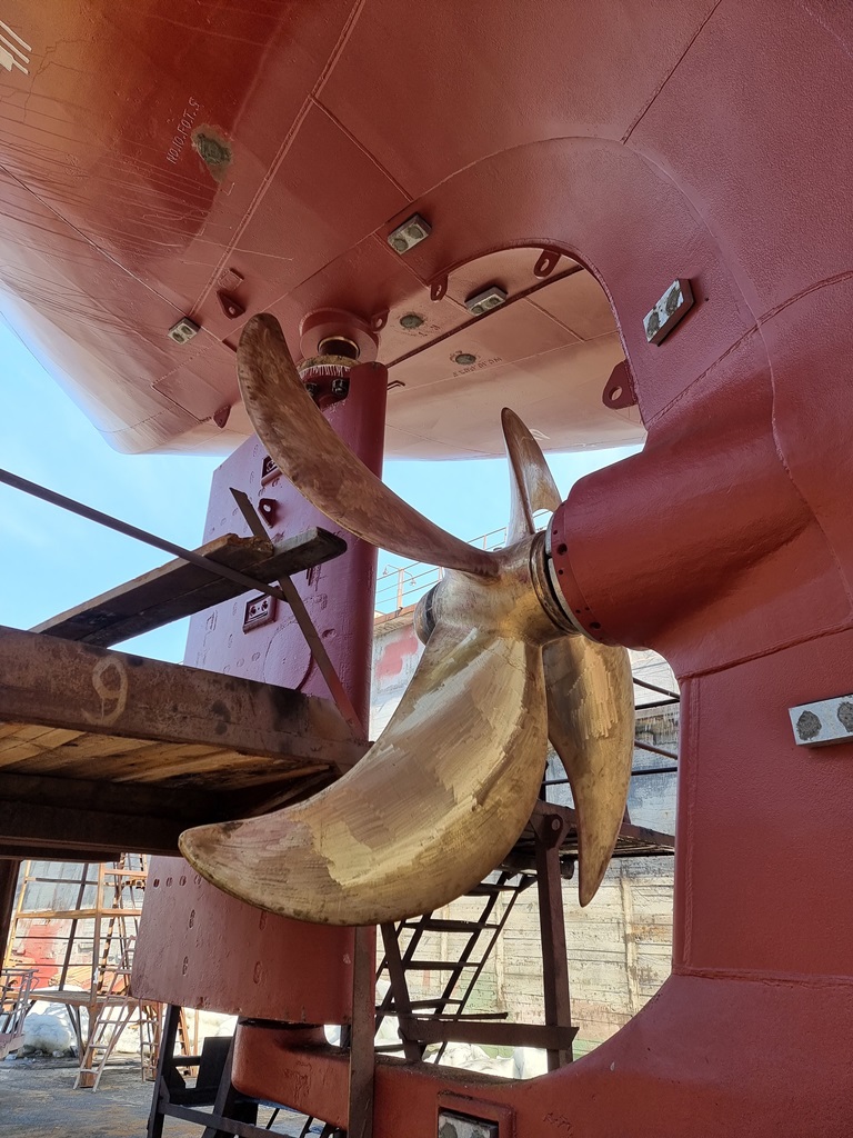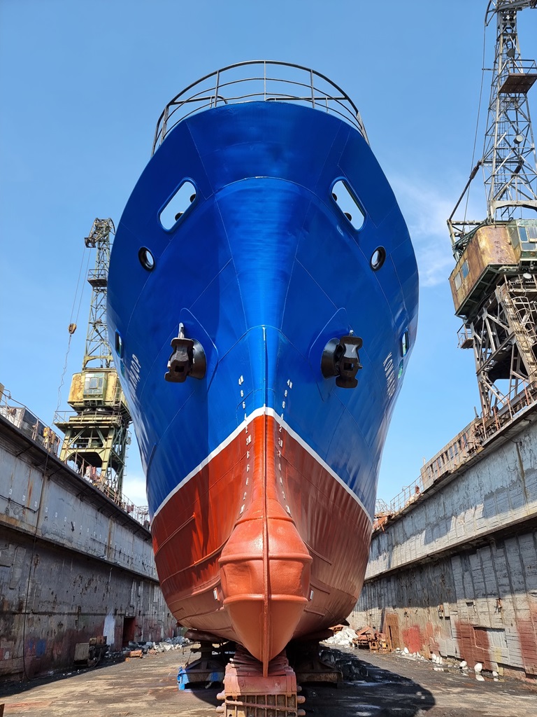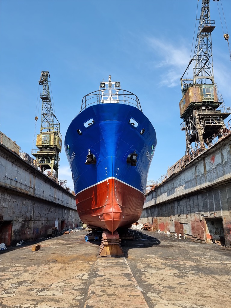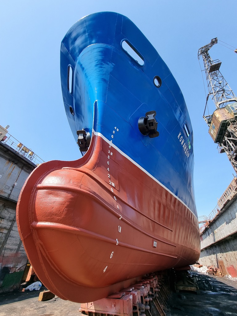 Судно проходило доковый ремонт в плавдоке №2 (с 15 февраля по 15 марта 2022 г.). В течение месяца были проведены корпусные, трубопроводные работы, а также ремонт донно-забортной арматуры, винто-рулевого комплекса.