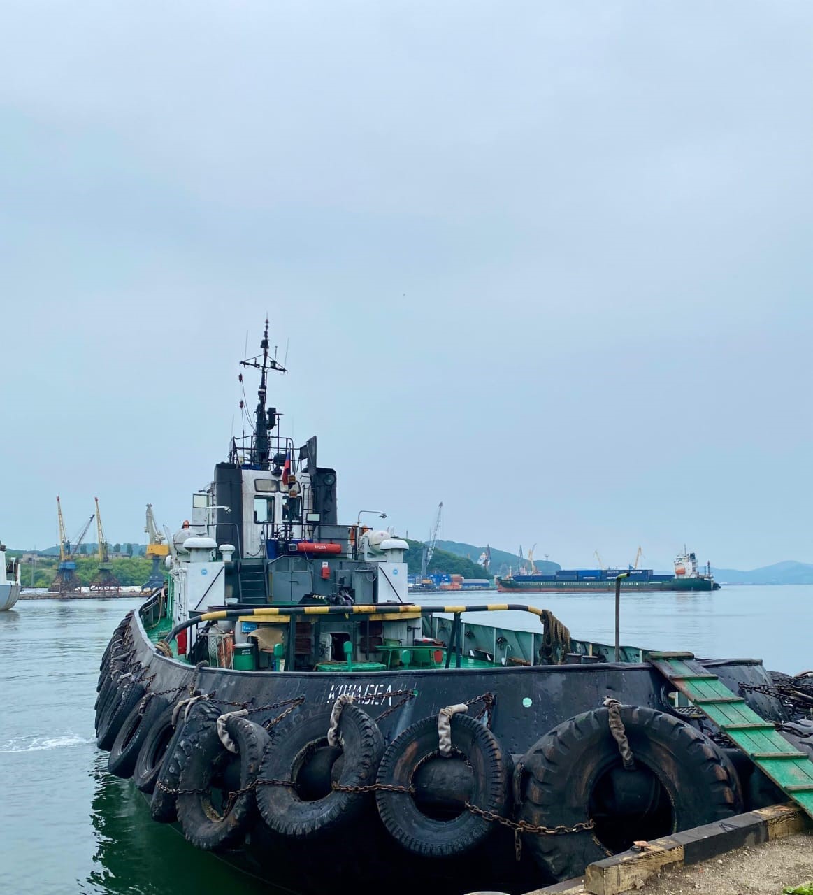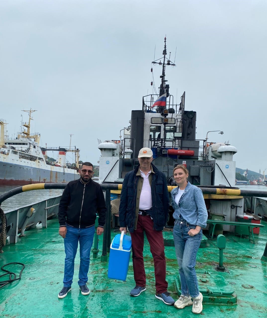 АО «Порт Восточные ворота – Приморский завод» предоставил буксир «Корабел», с борта которого Сергей Иванович Масленников и ведущий специалист по экологической безопасности АО «Приморский завод» Софья Комарова выпустили более 10 тысяч мальков краба в бухту Попова.