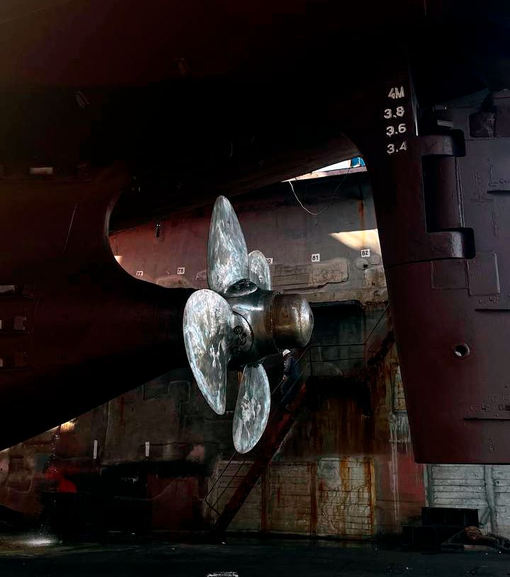 На данном судне установлен гребной винт с регулируемым шагом, который позволяет лопастям вращаться и изменять угол атаки, что делает устройство сложным, но очень надежным. Также были произведены измерения толщины каждого элемента корпуса судна и многое другое.